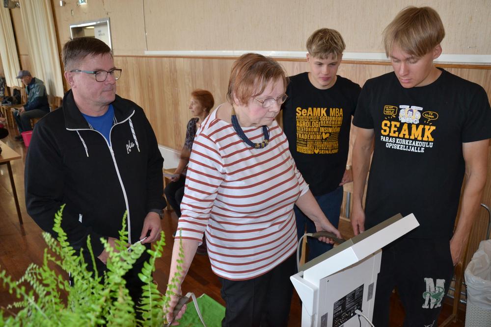 - Suuri rooli on myös Seinäjoen ammattikorkeakoulun opiskelijoilla, joita on tälläkin kertaa toistakymmentä. Fysioterapiaopiskelijat teettävät testejä ja antavat palautteen, kertoi proviisori Mika Wallin Kauhavan Ykkösapteekista.
